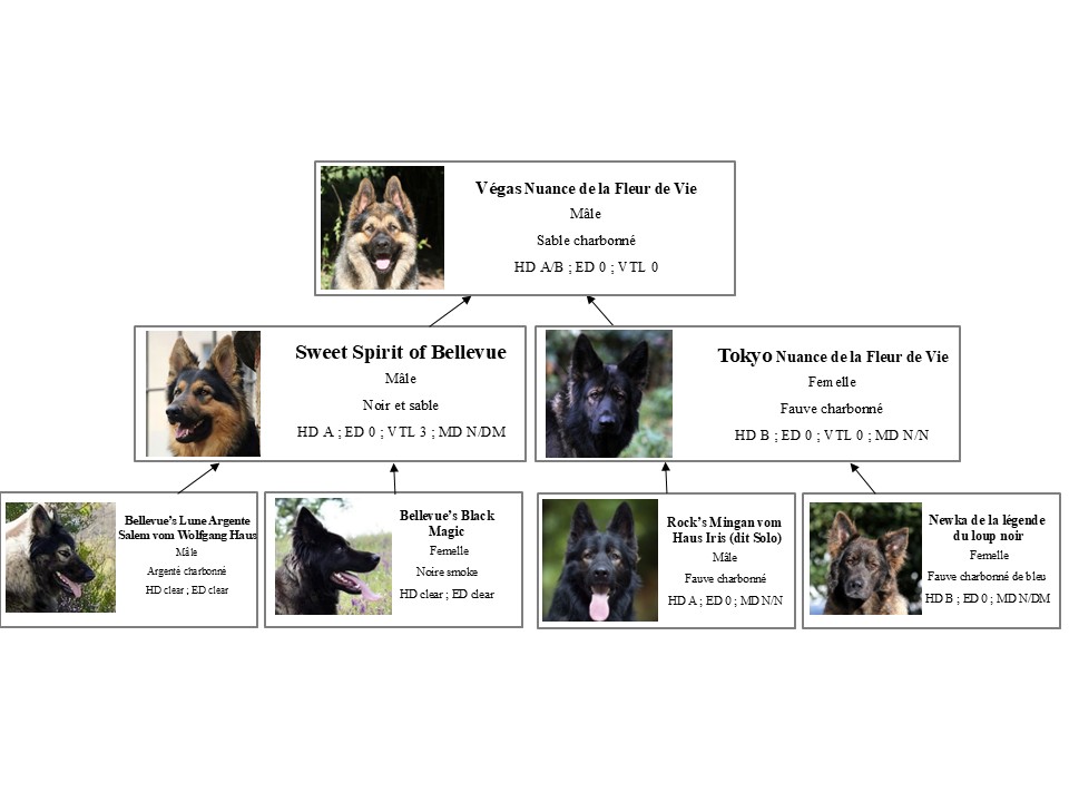 Physiquement Vegas est un chien avec une forte ossature, une jolie tête expressive et une belle prestance. Il a un poil long, dense et très doux.